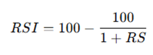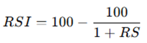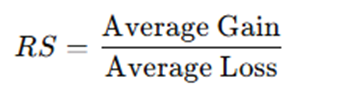 - RS (Relative Strength): Là tỷ lệ giữa giá tăng trung bình (Average Gain) và giá giảm trung bình (Average Loss) trong một khoảng thời gian nhất định (thường là 14 kỳ).