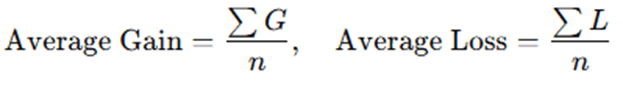 - Tính giá trị trung bình của gain và loss: