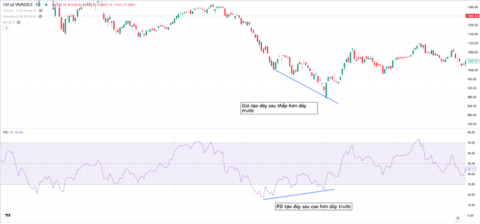 Ví dụ về phân kỳ dương RSI: